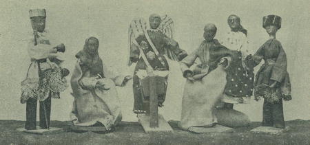 3. Voskové figurky betlémské oblákané z Jindř. Hradce.