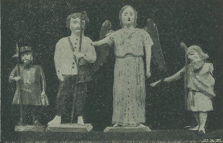 Pastuši. Vánoční hra koladnická. Osoby: Anděl oblečený v bílou řízu. Mládenec kordem o/brojený. Kuba, Vejtruba, pastiiši s dlouhými holemi a širáky. Rarášek začernený a opásaný povřislem i řetězem.