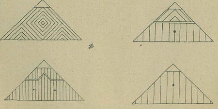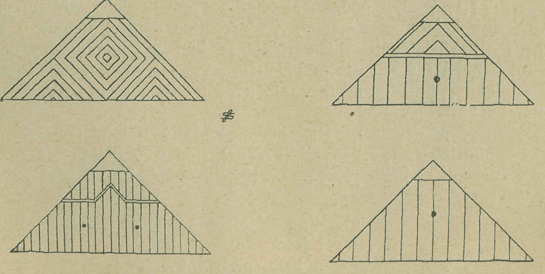 Vrchol kukle nebo takovéto stříšky zakončen je pravidelně m a k o-vičkou (korouhvičkou) dřevěnou nebo plechovou. Dřevěné makovičky bývají pěkně soustruhovány a řezány, takže v každé maličkosti vidíme vkus a touhu po výzdobě. V mako vičkách dřevěných jsou 1, 2, někde i 3 hřebíky. Bývaly asi všude tři, ale během času nejspíše vypadaly. Tesaři makovičkou zakončujíce práci svou zatloukali do ní 3 hřeby říkajíce: Ve jménu Otce i Syna i Ducha svatého. Amen. (Viz vyobrazení č. 17—25.)