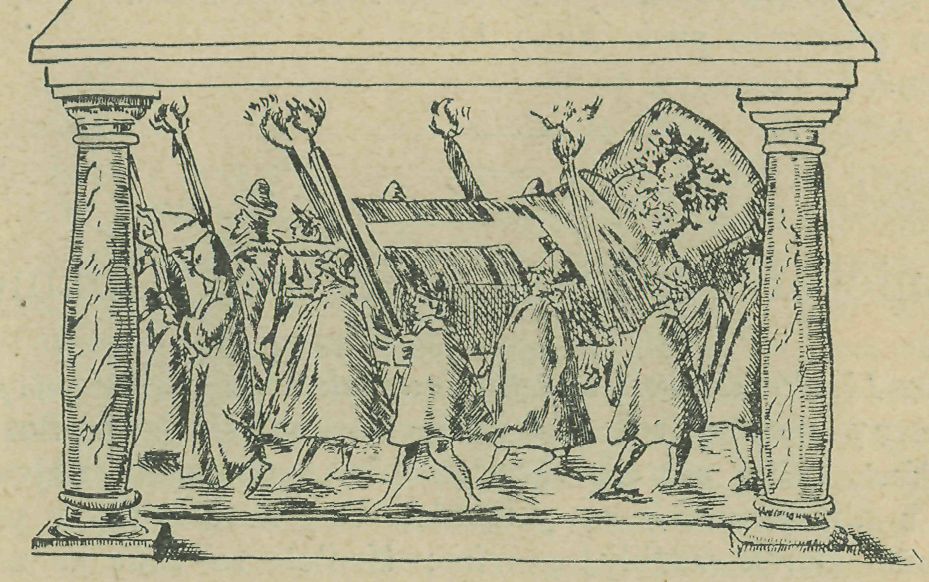 Č. 3. Pohřební průvod za rány morové v Praze r. 1582. Ze Sborníku V. Dobřenského na Strahově. Kreslil Ant. Dolenský.