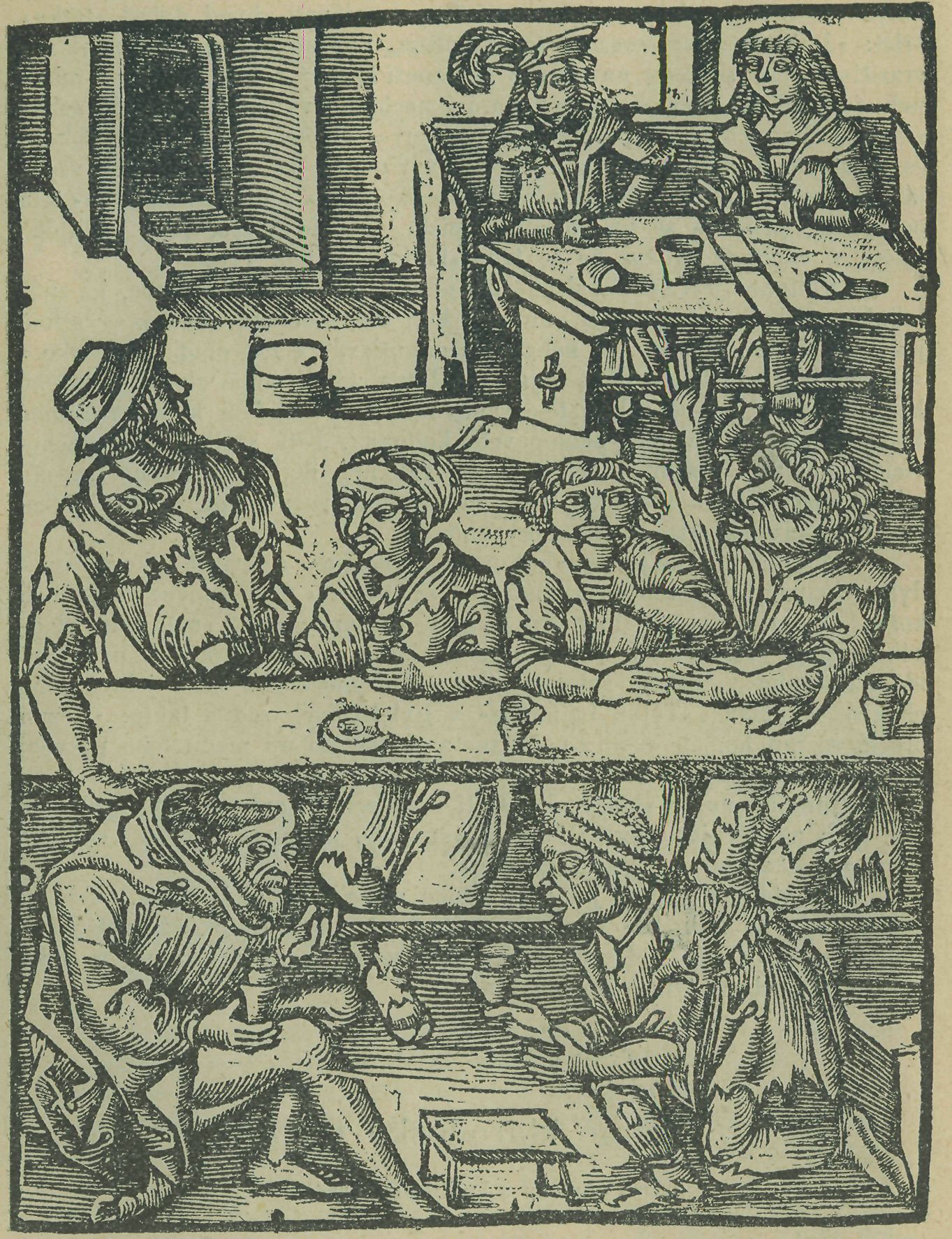 . 1. Krčma u pana Povolila. Dřevořezba v traktátu Pán rady 1505.