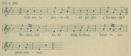 Čtvrtá skupina konečně obsahuje rythmus svítáníčka buď v druhé části písně veskrze (EN 242) aneb jako vložku (EN 704).