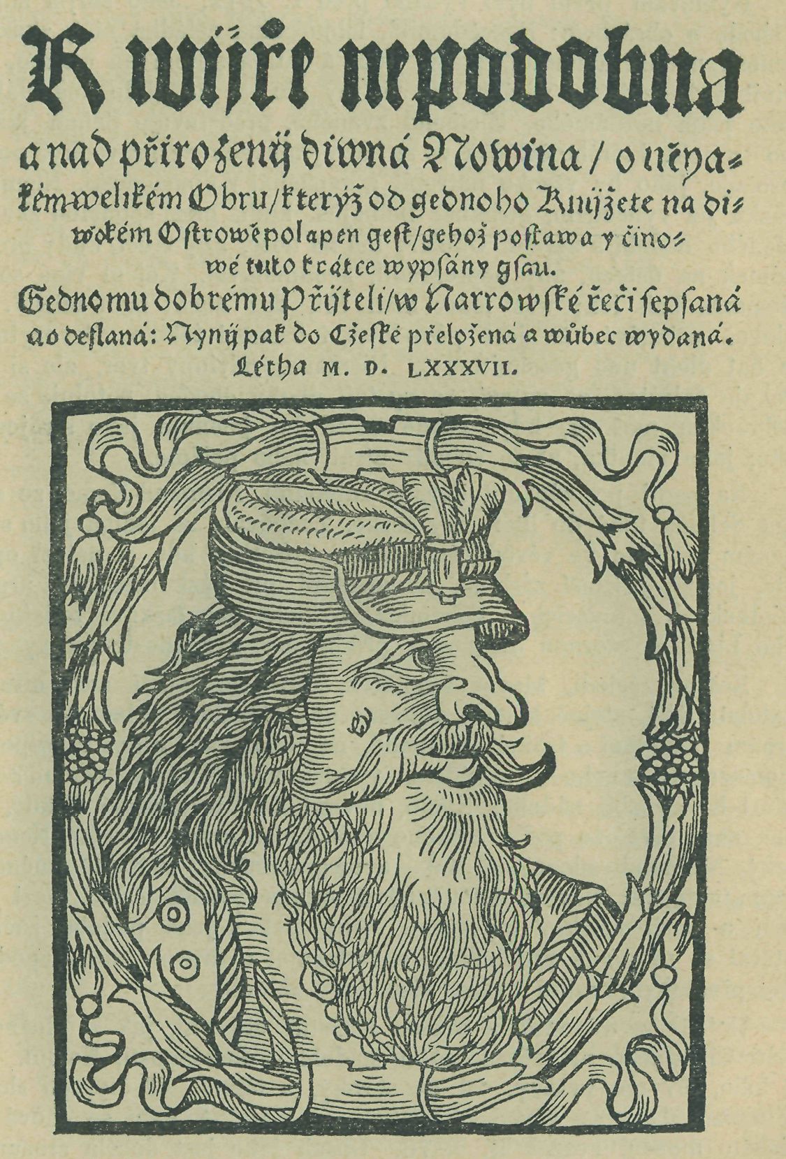 6. Titulní list Noviny o obru v Narrovské řeči 1587.