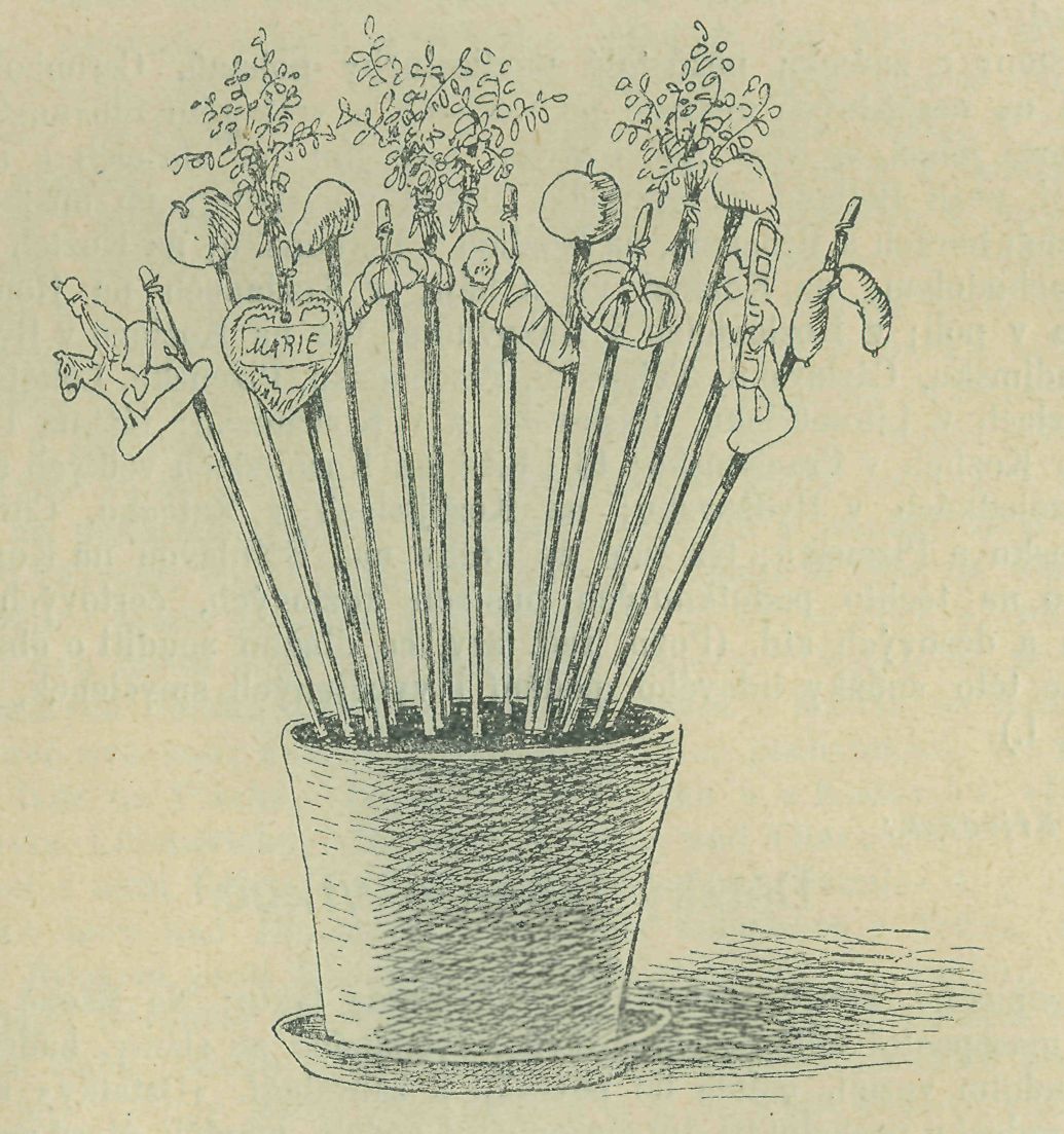 každého jiného květináče hlíny, do ní zastrkány byly as V2 metru dlouhé, tenké hůlčičky na způsob špejlů. Čím zámožnější domácnost, tím více hůlčiček a dle toho jich výzdoba. Na hůlkách, z nichž některé byly ozdobeny myrtou, byly nabodány neb navěšeny různé pamlsky (cukrovinky a ovoce), sem tam i někdy hračky a drobné předměty hodící se pro chlapce. Rodiče »strojili« vrkoče děvčatům a kde bylo více dcer, bylo i více vrkočů. Skoro celý týden před masopustním úterkem vystaveny byly vrkoče za okny a chlapci obcházeli město a posuzovali nádheru a jakost vrkočů, rozhodujíce, který vrkoč jest z celého města nejhezčí. Vyjedná-