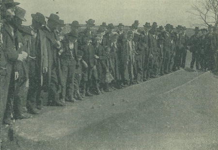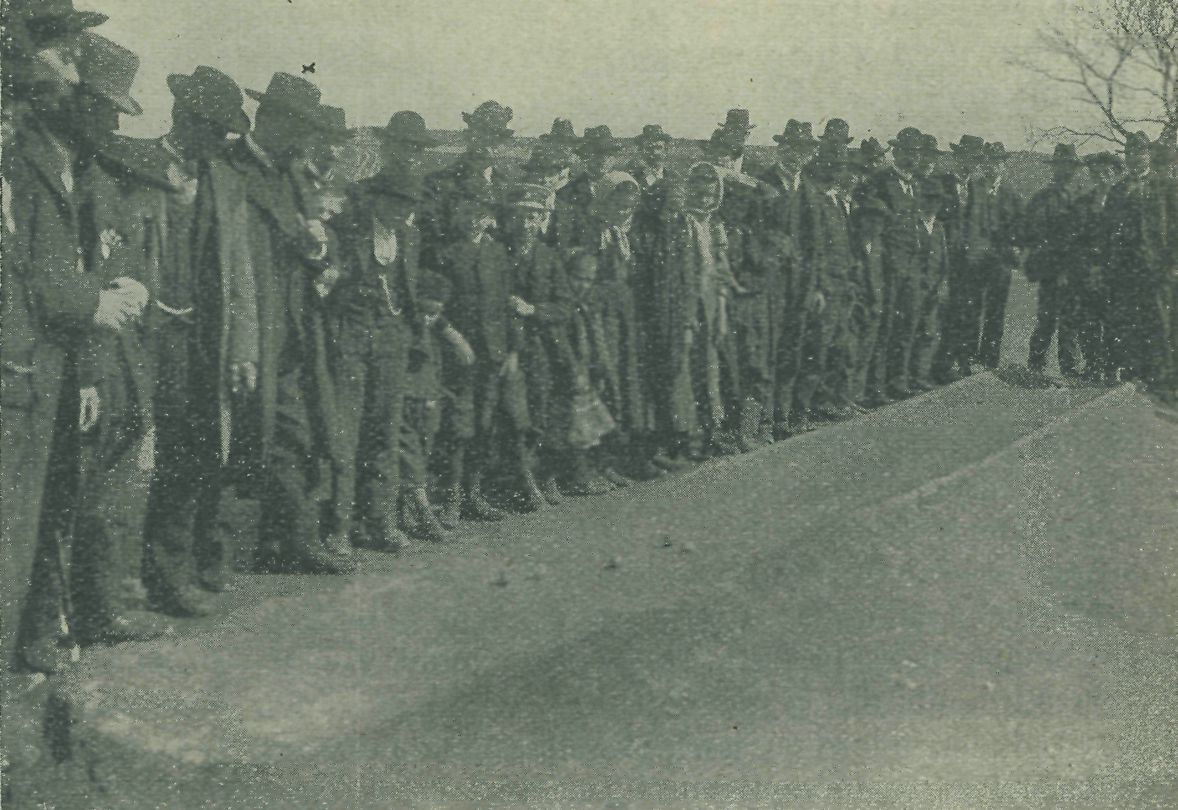 Valbisko, velikonoční zábava, koulení vajíček. Fotografoval J. Král. spolupracovník Českého Lidu (stojí V).
