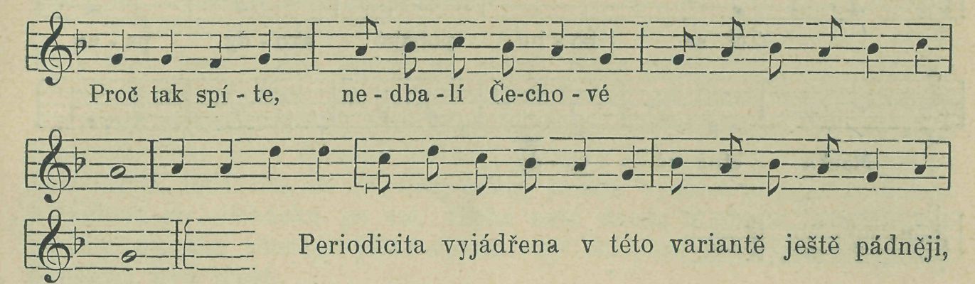 Zajímavé utváření periodické má tento nápěv tóniny mixolydické.