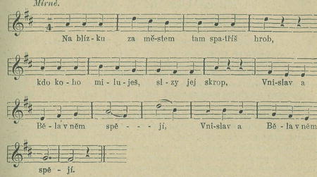 V prvním znění rozšířena jest po celých Cechách. Na Podřipsku zpívá se následovně: