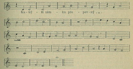 Další zpěv přidaný k Lázni španělské: »Písně historické jistě a pravdivě o hrozném pozdvižení země uherské a odstoupení téhož království od císařství římského etc. Proč a kterak se stalo? Jaká potejkání? Jaké škody se tam konaly: z latinské řeči v českou poezim přeložena. Léta páně 1604 a 1605« zpívají se na notu: Kanýži zámku přepevný. Také je možno, dle poznámky písařovy, zpívati notu: Otče náš, jenž v nebi bydlíš; aneb: Již Babylon hrozně klesá; aneb: Ne nám Pane, ne nám chvála; aneb: Vočko srdci žalost činí. V notách vyznačena je melodie: Kanýži zámku přepevný.