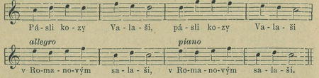 její možno pozorovati pokročilejší vývoj hudební. Předepsáno tempo a dynamika. Závěrečné piano byl tehdy oblíbený echový efekt, tentýž motiv opakoval se slabě jako ozvěna. Rovněž taktové čáry se již u Beckovského vyškytají. Klíč je sopránový.