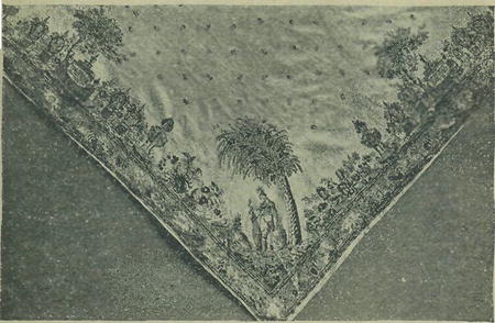 * Šátky z doby Napoleonské. Na dotaz dp. K. Procházky sdělujeme: Šátek bílý s trojbarevným tiskem, v rozích Viktorie pod palmou,