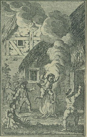 Johanka. I milý otče, jestli ho ten divoký muž do ohně vhodil, jakž se k tomu měl, tedyf přebídně shořel. A prosím, aby mi nic víc o tom nepovídali, sic se mi bude o tom' ukrutném příběhu v noci zdát, a budu nepokojně spát. Otec. Vezměmeť zas obrázek. Zdá se mi, že to bylo někde stranou v koutě, kde děti tu hru konali. Vidímť chatrné domy, a roztrhané doskové střechy.