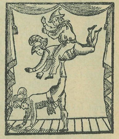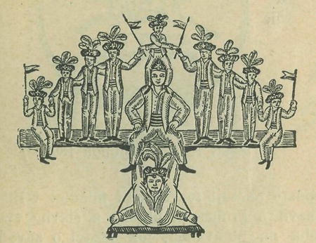 Co bývalo honění ke kroužku, pokleslé tuto na zábavu -komediant-skou v cirkusu? Vylíčil jsem podrobnosti této zábavy, u nás často mylně objasňované, v knize Z her a zábav staročeských, Vel. Meziříčí 1889, kamž pro doklady a literaturu odkazuji. Představení Bachova cirkusu podle cedulí staropražských věrně napodobovala tyto starodávné zábavy pánů cizích i také u nás zdomácnělé rytířské tyto kratochvíle. Jest to, pokud vím, u nás jediné zachované vyobrazení hry do kvintany i honění ke kroužku v takovém výběru.