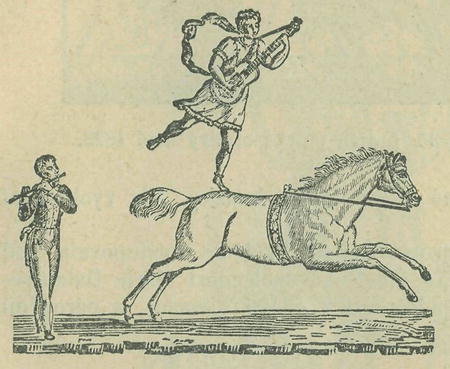 kterýž si zastrčil Indián do hrdla, z jehož jilce vypálil ohňostroj* jak zobrazeno na obrázku č. 35. Ceny k tomuto představení v Konviktu byly značně vysoké. Lože 2 zl., první místo 1 zl. 30 kr., druhé místo 40 kr., gallerie 30 kr., děti do 10 let na prvních dvou místech polovici. Noviny tehdejší ve zvláštních článcích upozorňovali na nevídané toto divadlo.*)