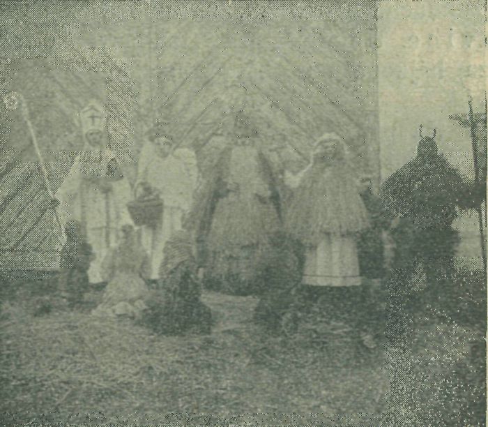 Kdyby se tak objevili, znenadání v Praze, to by celá Praha byla nohama nahoru,« podotkl jistý zhořský soused, přihlížeje k foto--grafování. Mikuláš, má ze slámy upletenou sukni, plášť a čepici, andél též ze slámy plášť a křížek v ruce, čert v dřevácích ovázánfhrachovinou,