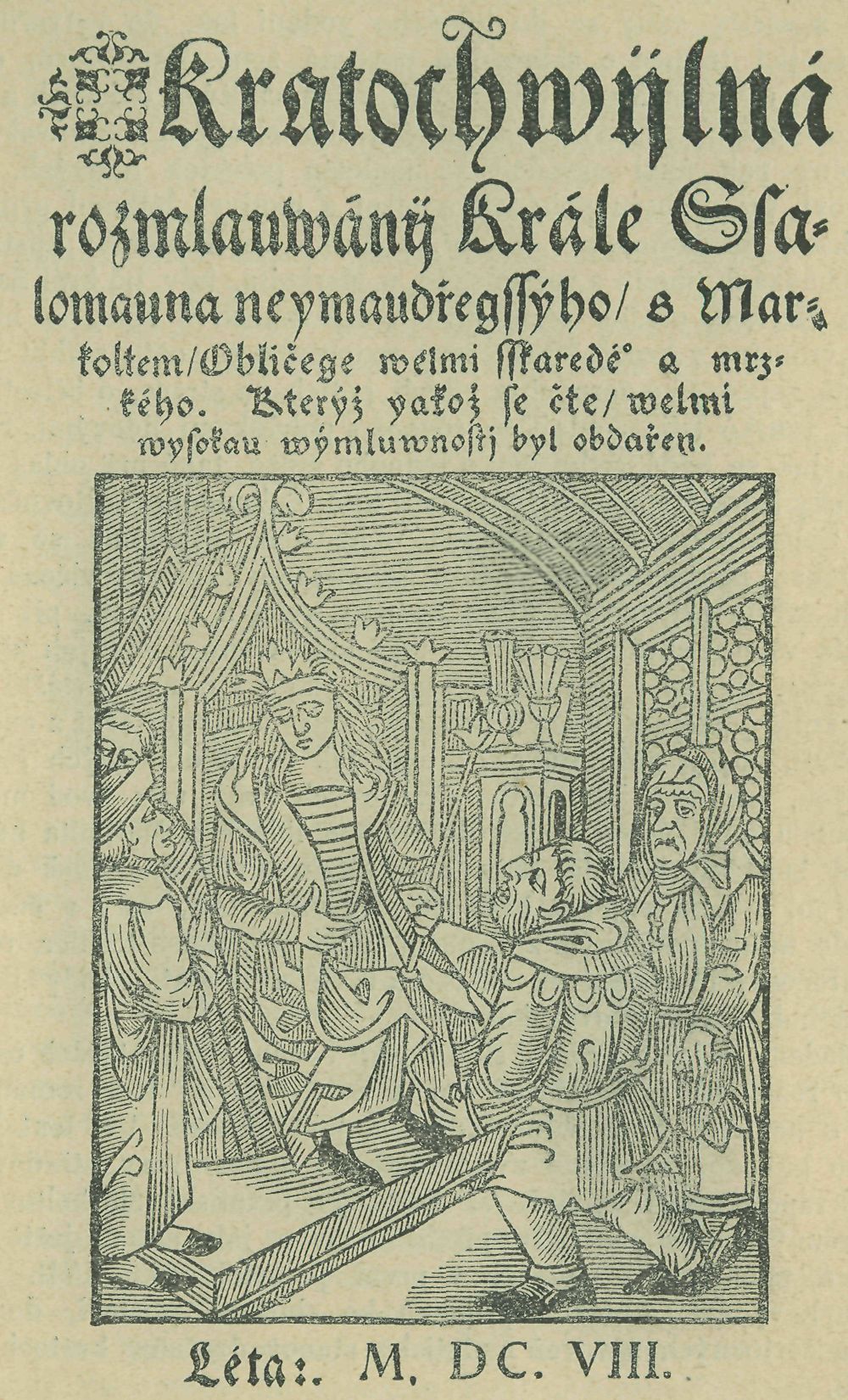 1. Titulní list vydání staročeského Markoita r. 1608. Unikát v Lobkovické knihovně v Roudnici.