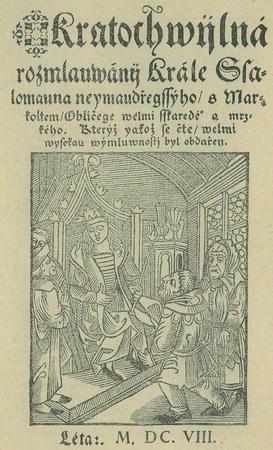 Jaké oblibě těšila se mezi lidem západoevropským knížka o prostořekém chytrákovi Markoltovi, svědčí řada starých vydání vo všech lite-