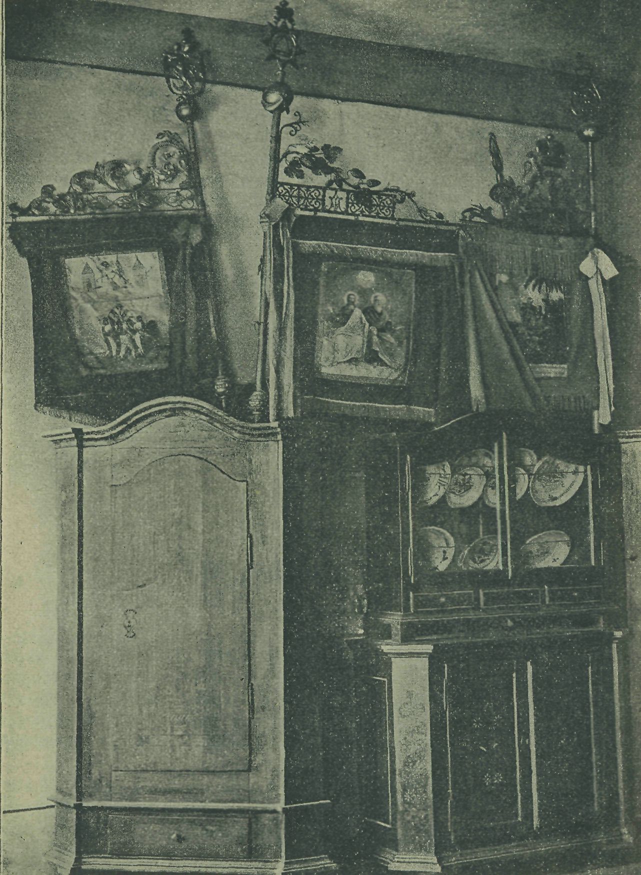 Cechovní prapory a nádobí na výstavo Hlineckého musea J908.
