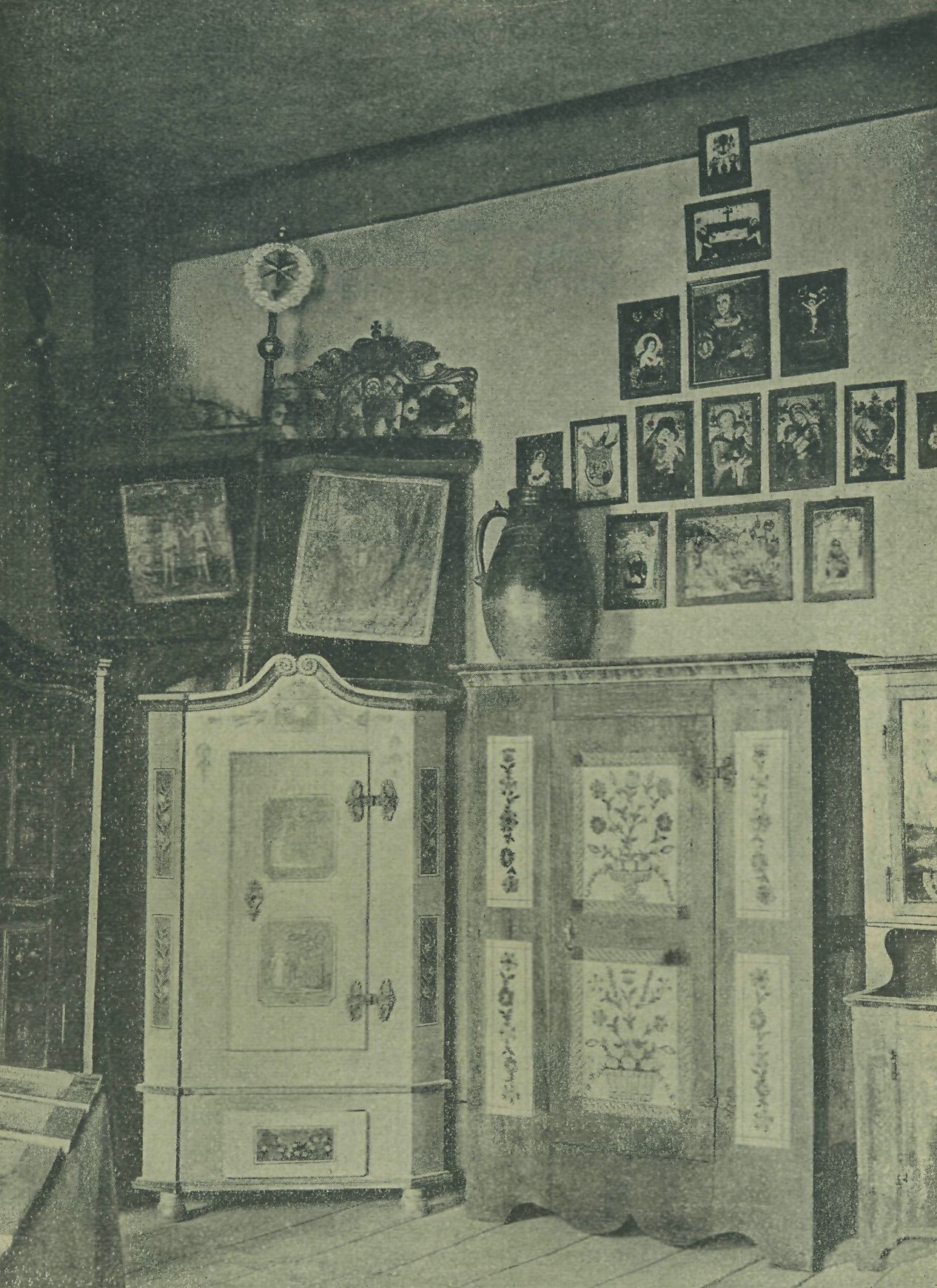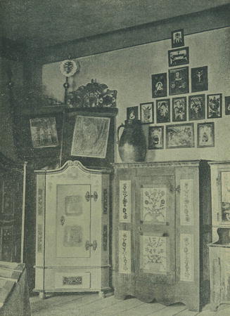Pohled na národopisnou síň na výstavě Hlineckého musea 1908.