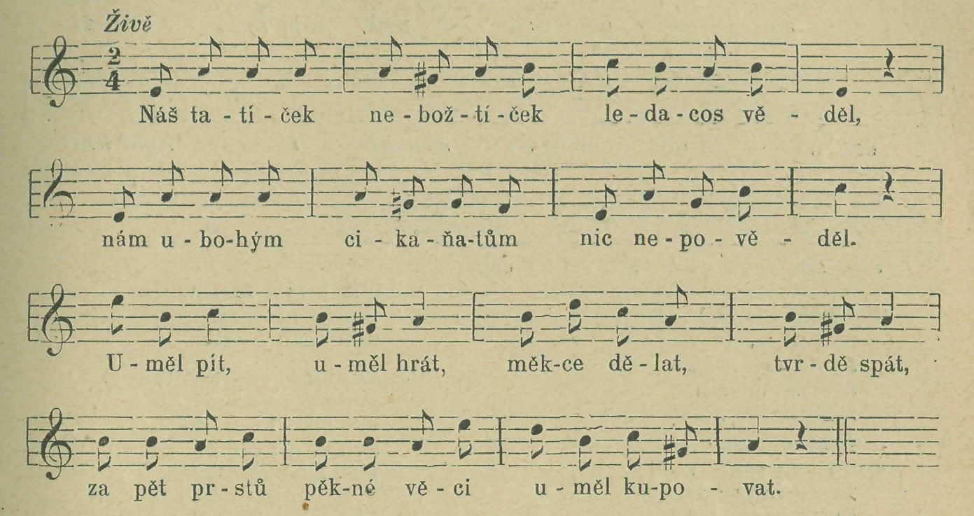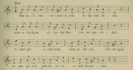 Celou beze změny nalezl jsem ji též v rukopisném zpěvníku Fr. Doudy z Dražiček u Tábora r. 1897.