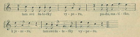 Časně z rána milka vstala, uzel šatů navázala; půjdu, matičko, k jezeru, šatečky sobě vyperu.