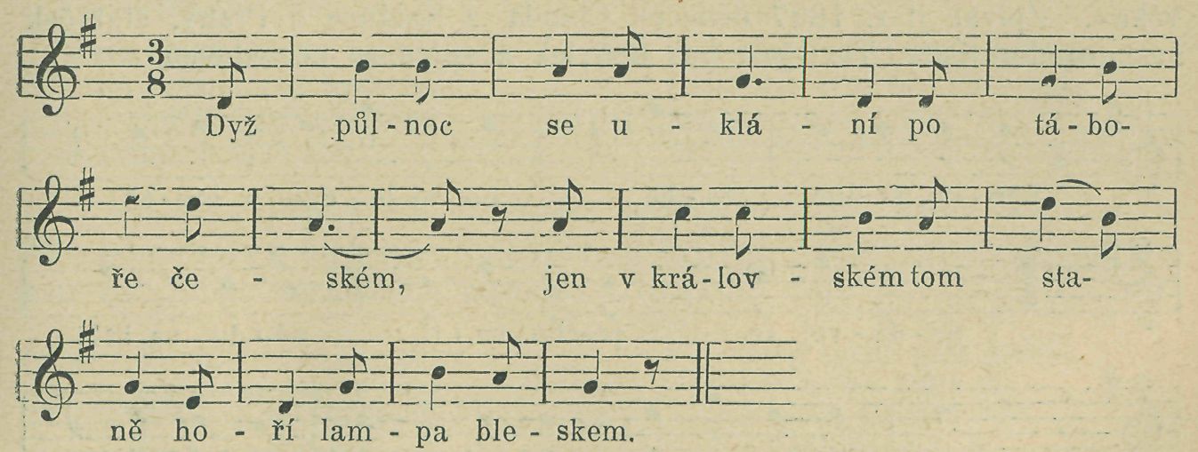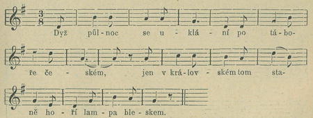 dyž sem s milou stával, dyž sem na dobrou noc hubičky jí dával. Dával sem jí, dával, nechtěla však bráti, vo hubičku prosil, nechtěla jí dáti.