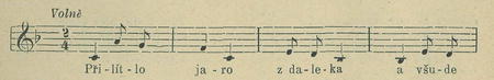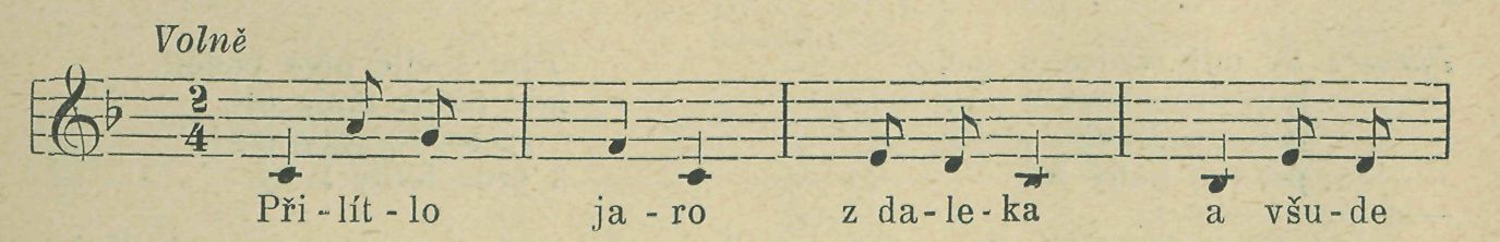 Číslo I. »Přilítlo jaro z daleka« zpívá se ve Dřínově beze změn s tímto nápěvem: