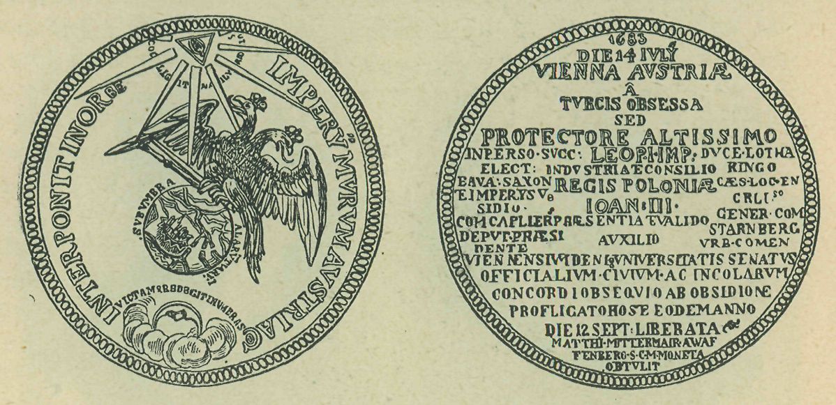 5. Peníz ražený na památku osvobození Vídně r. 1683.