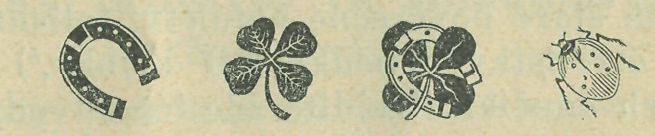 znázorňují podkůvky, jetelové ětyřlístky a slunéčko sedmitečné,10) jehož sedm teček připomíná pověstnou »židovskou« a tudíž prý šťastnou sedmičku.