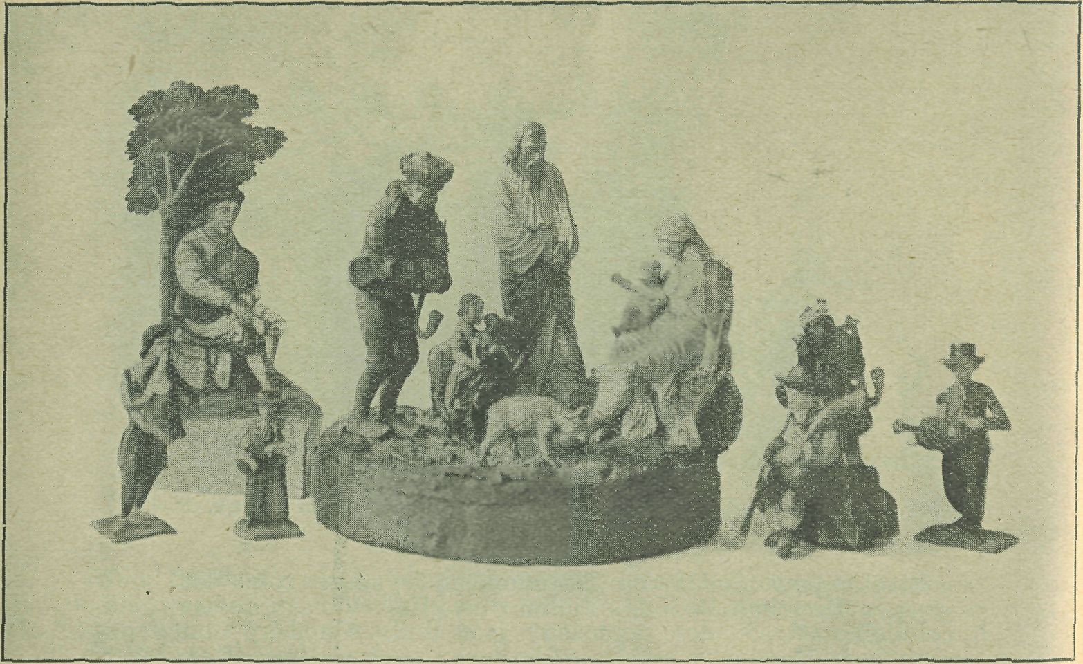 Obr. 23. Skupina dudáčků československých, (stol. 17. až 19.) u jesliček. Z jesličkové výstavy Lidové Akademie o vánocích 1923 v Klementinu. Fotografie A. Šorma.