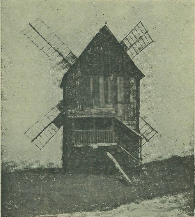Ale dnes dožívají věk již poslední mohykáni tohoto mlýnského typu. Zmizel již dřevěný »větrník na Starém Jičíně«, jehož kresbu zachovalo »Moravské Kravařsko« (str. 69), zmizely také »větrňáky« jiné. Uveřejněné tu dva snímky (z roku 1924) zachy-