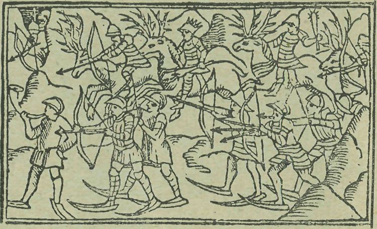 Čechové dočetli se o nynějších lyžích v knize, vydané od Matouše Hozia r. 1590. Hozius z Vysokého Mýta, bakalář, učiteloval v Kolíně, oženil se tam a usadil. »Maie z požehnání Božího z strany věcí časných slušné zásobení,« čili po našemu, jsa zá-možný měšťan, ze záliby překládal kroniku Moskevskou Alexandra Guag-nina, Vlacha z Verony, kterýž za Štěpána Batora hejtmani! nad pěším lidem na Vitebsku, Překlad poslal ku ,píe-