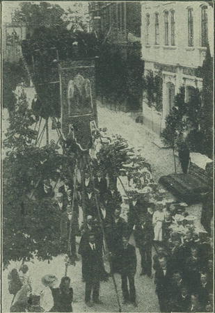 1. Cechovní prapory v průvodu na Boží Tělo ve Vysokém n. J. Foto Fr. Hák v Nové Pace.