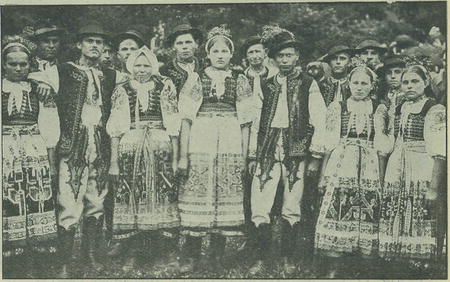 by mu národopisný pel u skupin lidových, oděných národními původními kroji zdejšího kraje a okolí, který dodával průvodu božítělovému v Trenčanských Teplicích rázu zvláštního. Praha jásala radostí ve dnech svatojanských nad účastí lidu slovenského v malebných krojích, který si vykračoval za pochodů domácí svojí muziky po ulicích pražských, seskupen jsa v čety podle obvodů. Byl to krásný, úchvatný pohled... Ale — když jsem viděla božítělový průvod v Trenčanských Teplicích, viděla a cítila jsem hned rozdíl. V Praze připadalo mi to, jakoby prosté květy polní, luční a lesní, z okolí, kde vyrostly, kde načerpaly pestrých barev a přirozené vůně, byly přesazeny do zaprášených ulic velkoměstských s hukotem vozidel s lomozem a shonem pospíchajícího lidstva, s pronikavou »muzikou« aut, motocyklů atd., zakouřených ulic pražských... Tady, v Trenčanských Teplicích, působilo vše dojmem nezkaleným, přirozeným.