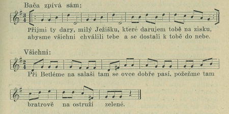 6. Co pak dáme Ježiškovi, maličkému panáčkovi, já nemám nic a ty též, optá j sa, má-i Mikeš.