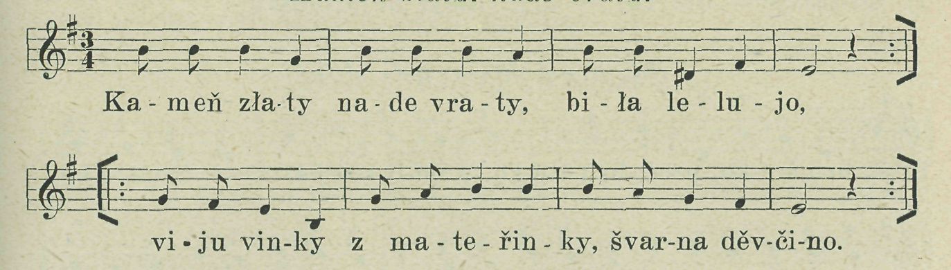 9. A mä bratři, kamarádi, poďmä mä za ni, ať i ešče zuhli-dame, co je za pani.