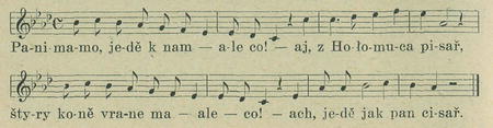 4. Kulily śe, kuliły — ale co! — a' ješče červenější. Komu śe ty dostaneš — ala co! — ach, moja nejmilejší?