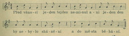 3. Na kvasnice zapomněli, v celejch horách jich neměli, přiběhla k nám nevěsta, abych běžel do města.
