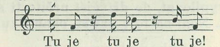 Tato barvitá směs lakeloke haliditu jest asi zbytek slov ze slyšených písní, jichž smysl nepojala. Náhle chce: