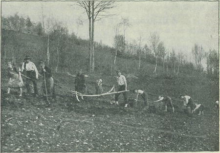 Sázení bramborů »samotinou« v Bratrouchově v Podkrkonoší. Foto Fr. Hanuš.