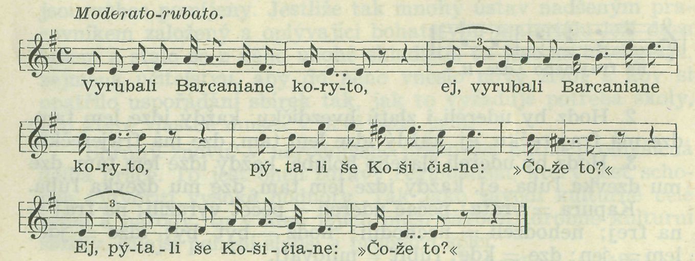 2. [:Bo gdovec veľo dzecí má,:] [ :vše peršu ženu spomi-ná:,] [:spominá.:]