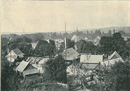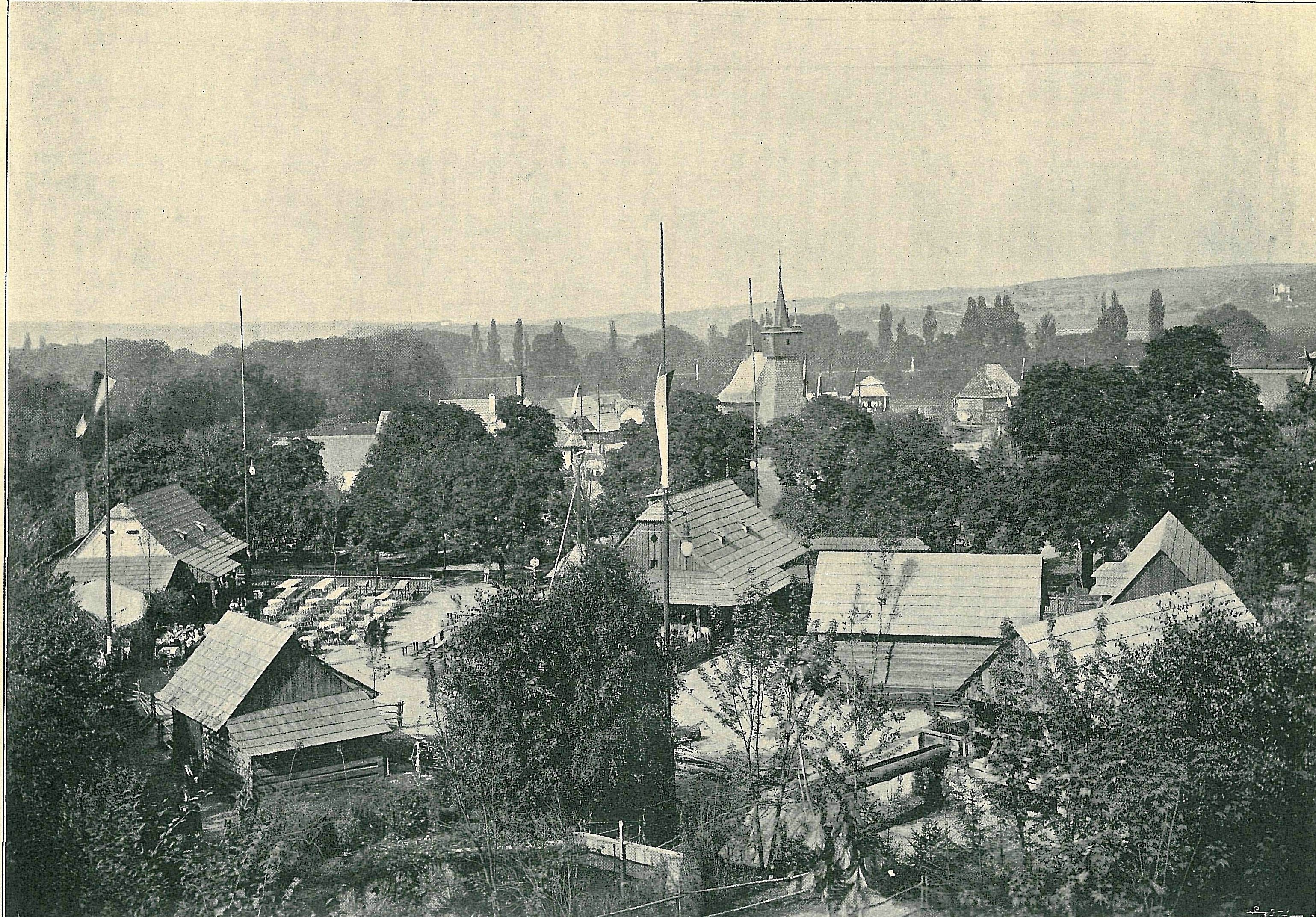 Pohled na Valašskou osadu. Dle fotografie Hynka Tanouška, Člena K. Č, F. A,
