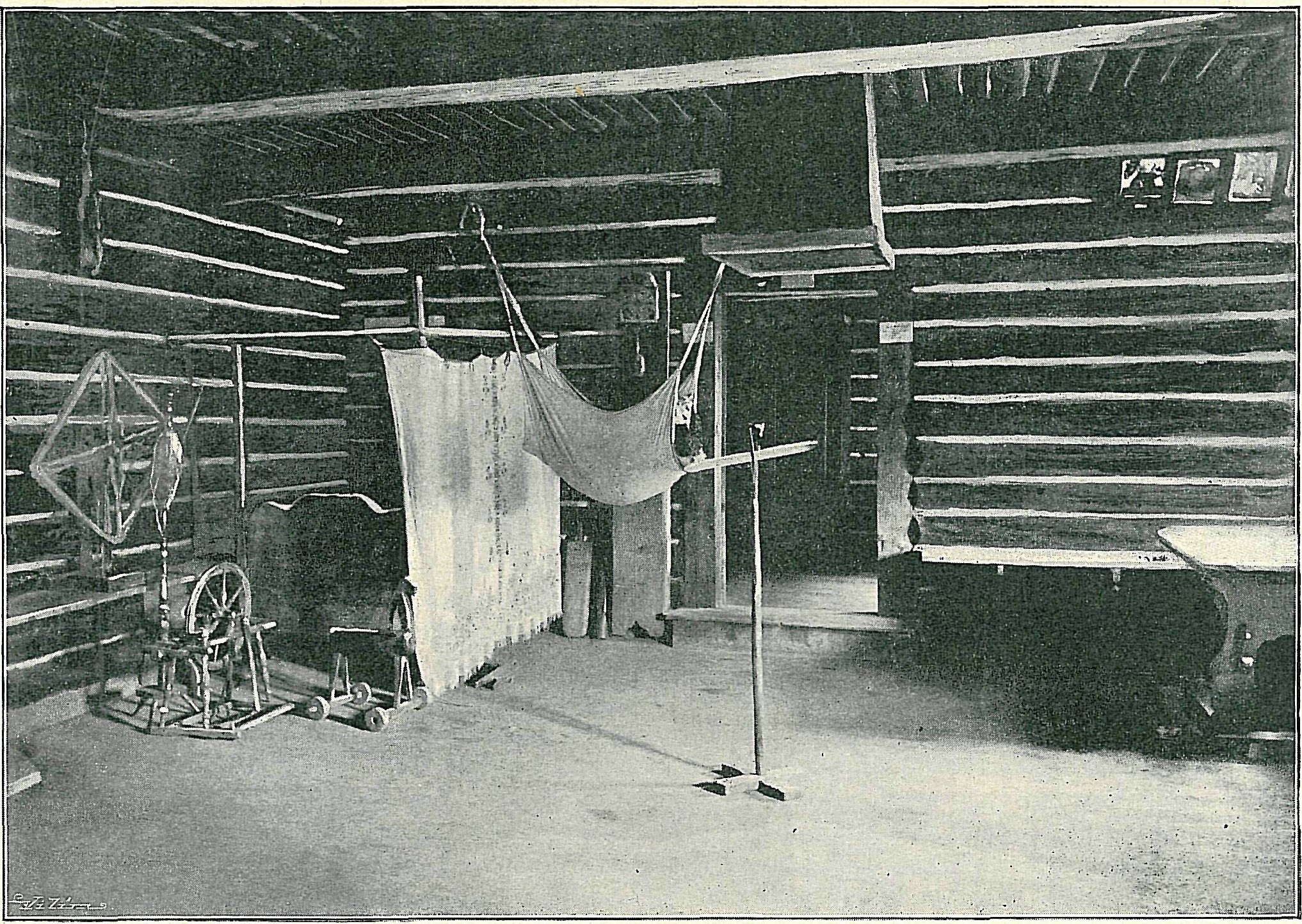 ozdobeny byly bohatě obrazy na skle malovanými, jeden těsně vedle druhého. V koutku visíval též vždy dřevěný krucifix s hořejškem skloněným, mimo to někde blízko stolu, pod skleněnou bání neb v zasklené skříni, sošky svatých, zejména Panny Marie. Nad stolem vznášela se známá již z ostatních statků holubička z vejfuku. U stolu bývala jediná židle s rozkročenými nohami, pěkně souměrně vyřezávaná. Stávala proti krucifixu a podle ní s druhé strany stála stolice bez lenochu, bez ozdob s hůlkovitými nohami. Na židli sedával hospodář, který ovšem ustoupil hosti, když přišla návštěva. S ostatních stran sedělo se na »lajci«, bez noh, podepřené prkennými podnožkami. Pod lajcí nasazovaly se kvočny, zvlášť na jaře. S lajcí kolem stěny stýká se ve čtvrtém koutě u dveří kratší jiné, na které stojí »suden« (mísník), nechávaje malý kousek lajce prázdný, pro nádobu k pití.