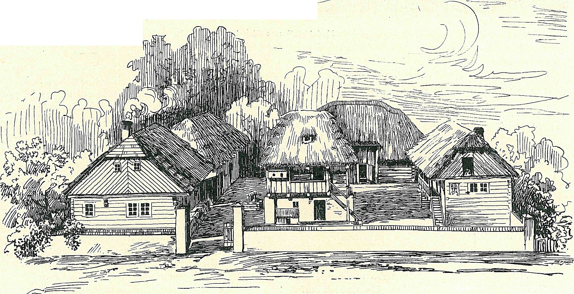 Zbývá ještě zmíniti se o některých obydlích a stavbách živnostenských. Rázovitými stavbami byly kovárny, ať nalézaly se v městě neb na venkově. Na modelu venkovské kovárny*) Fr. Jirmana z Bezděkova (okres polický) spatřujeme pěkný vzor obydlí a dílny kovářské. Stavení jednopatrové při cestě stojící poskytuje stavbou svojí a uspořádáním místností mnoho zajímavého. Do kovárny vchází se přístřeškem bez stropu, pouze obedněným prkny a krytým šindelovou střechou. Sloužil přístřešek ku kování koní, správě vozů a hospodářského nářadí, byla-li venku právě nepohoda. Vlastní kovárna byla místnost zděná, klenutá, opatřená výhní, měchem, kovadlinou, rohatinou, policí na kovářské nádobí; určena byla pouze ku pracím ohněm. Před vchodem do obydlí pod pavlačí nalézala se místnost obedněná prkny sloužící za předsíňku. Dveřmi jednoduše zhotovenými vcházíme do přízemní místnosti roubené, která sloužila za komoru a z které vedly dvéře do kuchyňky a schody do patra. Byl li kovář též milovníkem hospodářství a mohl-li sobě vydržovati kravky, byla pak místnost za chlévem. Pod schody do patra ukládala se píce a v kuchyňce na ohništi vařila se zápařka kravám a tloukly brambory vepříkům. Po dřevěných schodech vcházíme do patra, které jest celé roubené. Nejprve vstoupíme do síně, která překvapí svojí prostorností a která slouží za jídelnu, spíž i ložnici pro tovaryše a učedníka. Ze síně vedou dvéře na