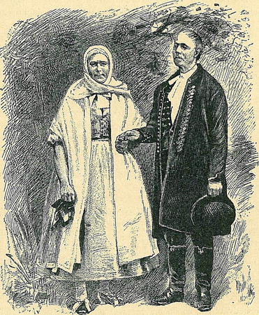 nebo »špenserka«. Jsou to vše kabátky: »grytky« staršího rázu, »špensry« novější, na předu vykrojené, vzadu s var-hánkovitými šůsky, s rukávy nahoře širokými, v zápěstí úzkými. Bývaly obyčejně látkové, špensry však i hedvábné. Do výstřihu jich přišla přes prsa křížem »bila šatka turecka s červenyma kvitkoma nebo červena lipska«. Která žena neměla šatku, nosila na zimu, ba i na léto »kožušek« látkový se širokým límcem kožešinovým u krku (šedým) a v zápěstí rovněž s kožešinou, nahoře se »zapináky« na předu a šosky vzadu. Ke »slubu«, t. j. sňatku, nosívaly bohatší nevěsty druhdy i modrý plášť s límcem i zlatem ovroubeným, což připomíná na nevěstu z Třebové, o níž jsme se svrchu zmínili. Hlava byla za stara ovázána »zástěrou« bílou i vyšitou a sice do týla (do ficka), nebo rozmanitými šátky, často s třepením. Později přišly do módy »karkule «, bílé čepečky, na východ a do Pruska i »kaptury« zvané, různě bíle i zlatem vyšité. Na zimu však zastupovala je »čapka zimní« hedvábná, uvnitř kožešinová, kolem pak se »sivym kralikovym premem«. Na dýnku byly často i zlatem vyšité a mají v předu pentle a vzadu »kyču« z nich, hluboko do zad spadající. Celkem připomínají tvarem české holubinky. Na nohy obouvaly Opavanky nízké »strejky« se »šnolkami« a bílé neb červené »pančochy«. Při pohřbu odívaly se ženské do bílých obrusů plátěných, v rozích i vyšívaných; za adventu, postu a smutku do šatů temných i do černých zimních čapek.
