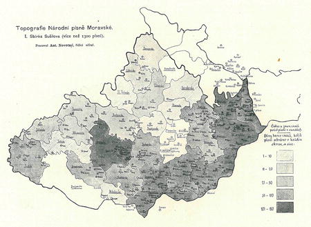 s českými a moravskými nebylo známo tolik, kolik zvláštnost a zajímavost jejich zasluhovala. Pokus mezeru tu vyplniti sbírkou co možná obsáhlou stal se v Turč. sv. Martině r. 1880 vydáváním »Slovenských spevů«, pořádaných Janem Kadavým (později K. Ruppeldtem) a poskytl již valně přes tisíc písní i s nápěvy. (Výběr ze »Slovenských spevů« v klavírní úpravě M. Francisciho ve dvou sešitech po 100 písní nazývá se »Trávnice«) Že sběratelská činnost »Pohád-kové komise Slavie« zasahovala také nejen na Moravu, ale i na Slovensko, samo sebou se rozumí. Konečně nelze mlčením pominouti zajímavý doklad známé horlivosti, s níž Božena Němcová pečovala o sbírání lidopisného materialu slovenského: list (patrně z let padesátých), jímž zesnulému skladateli Jos. Drahorádovi doporučuje Miču drotára, který mu dvaadvacet začátky svými uvedených slovenských písní zazpívá.