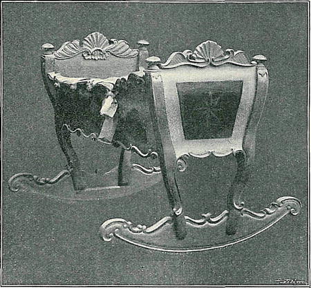 Opouštíme již nábytek soukromý, abychom se zmíniti mohli ještě o dvou lavicích kutnohorských, jež nebylo možno do postupu látky předchozí vřaditi. Obě patří mezi nejstarší a nejzajímavější památky nábytkového oddělení. Starší z nich pochází z pozdní doby gotické (str. 326); sedadlo její dle požadavku doby vyvinuto jest jako truhla. Lenoch, přednice i stranice jsou pokryty zcela plochou řezbou, která jeví přísně goticky stylisované ozdoby rostlinné propletené — mnohde dosti humoristickým způsobem — zvířaty i postavami lidskými. Lavice druhá, kostelní, dle odznaku určená příslušníkům cechu sladovnického, pochází z r. 1596. Členěním architektonickým řadí se přímo ke truhle, vod-ňanské. Celek sestaven jest s obdivuhodnou dovedností, jak pro pohodlí sedících, tak i po stránce umělecké. Poměry článkování, reliefu k ploše, rozdělení ozdob vkládaných, jich kresba a spracování svědčí o vytříbeném vkusu svého mistra, kutnohorského truhláře z konce věku XVI. (str. 335). A ještě něčeho bylo by při popisu našem vzpomenouti Oddělení nábytkové obsahovalo i celou řadu pokladen cechovních. Tvořily by málem o sobě zajímavou výstavku. Tu byly některé prostě užitkové, proti vloupání zabezpečené, celé železné, pasy pobíjené, jako na př. důkladná pokladnice rychnovská; tu zase dřevěná »matka pokladnice« z Chlumce n. C. zdobena je zajímavým prolamovaným kováním z pozdní renaissance. Onde pozorujeme, jak cech mlynářů klatovských vyzdobiti dal roku 1791 svoji truhlici ornamenty i odznaky cechovními v práci vykládané. Jiných četných opominouce, připomeneme sobě ještě pokladnici soboteckou, jež pod víkem řezbou znázorněné má odznaky počestného pořádku obuvnického, a aby veškery techniky zastoupeny byly, uvedeme si ještě jmenovitě nákladnou pokladnici řezníků slanských, jež vně zdobena byla bohatou architekturou barokní a vnitř pod víkem malbami.