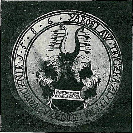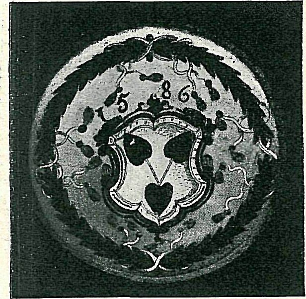 O něco hojnější byly ony destičky okrouhlé, s malbou v neprohlédavých emailových barvách, jež v Čechách bývaly zajisté v XVI. a XVII. stol. velice oblíbeny a jichž krásnou kolekci chová Museum království českého. Nejstarší z nich byl terč se znakem guttensteinským a letopočtem 1579 (z Humpolce), k němuž co do stáří pojily se obě desky ze sbírek archaeologického sboru »Vocel« v Kutné Hoře; jedna z nich v zeleném věnci nese znak říčanský a letopočet 1586, druhá znak Trčkovský s nápisem: »Garoslaw Tryczka z lypy Na Ledczi a Wopocznie 1586«. Zajímavo jest, že Trčkové měli na panství opočenském starodávnou sklárnu v Deštné, již v XVI. stol. připomínanou, a není nemožné, že tyto destičky k rodu jich se táhnoucí tam byly vyrobeny.