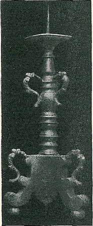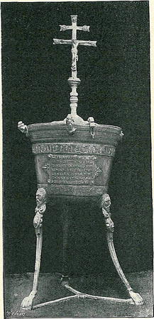 Mimo tyto dvě křtitelnice zasluhuje pozornosti naší i osmiboké víko křtitelnice musea klatovského ze XVII. stol. Ozdobeno jest vrytými obrázky scénickými (představují sedmero svátostí, jak o tom svědčí i nápis: »GE KREST - BIRMOVANIE - SWA-TOST OLTARNI - POKANI - POSLEDNI POMAZANI - SWIECENI KNIEZSTWA - STAW MANZEL-SKI), a podobou sv. Jana Křestitele. Sbírka svícnův kostelních byla dosti četna. Tři z nich, bronzové, pocházejí ze XIV. století (jsou majetkem umělecko-průmyslového musea pražského a pana K. Adámka z i Hlinska). Formou svou úplně se shodují se způsobem, jak gotické umění sestrojovalo i podstavce křižův, monstrancí i kali-chův: noha šestilistá vztyčuje se ve štíhlý stonek, uprostřed ořechem přerušený. Renesanční, rovněž bronzový svícen, na třech tlapkách stojící, za-