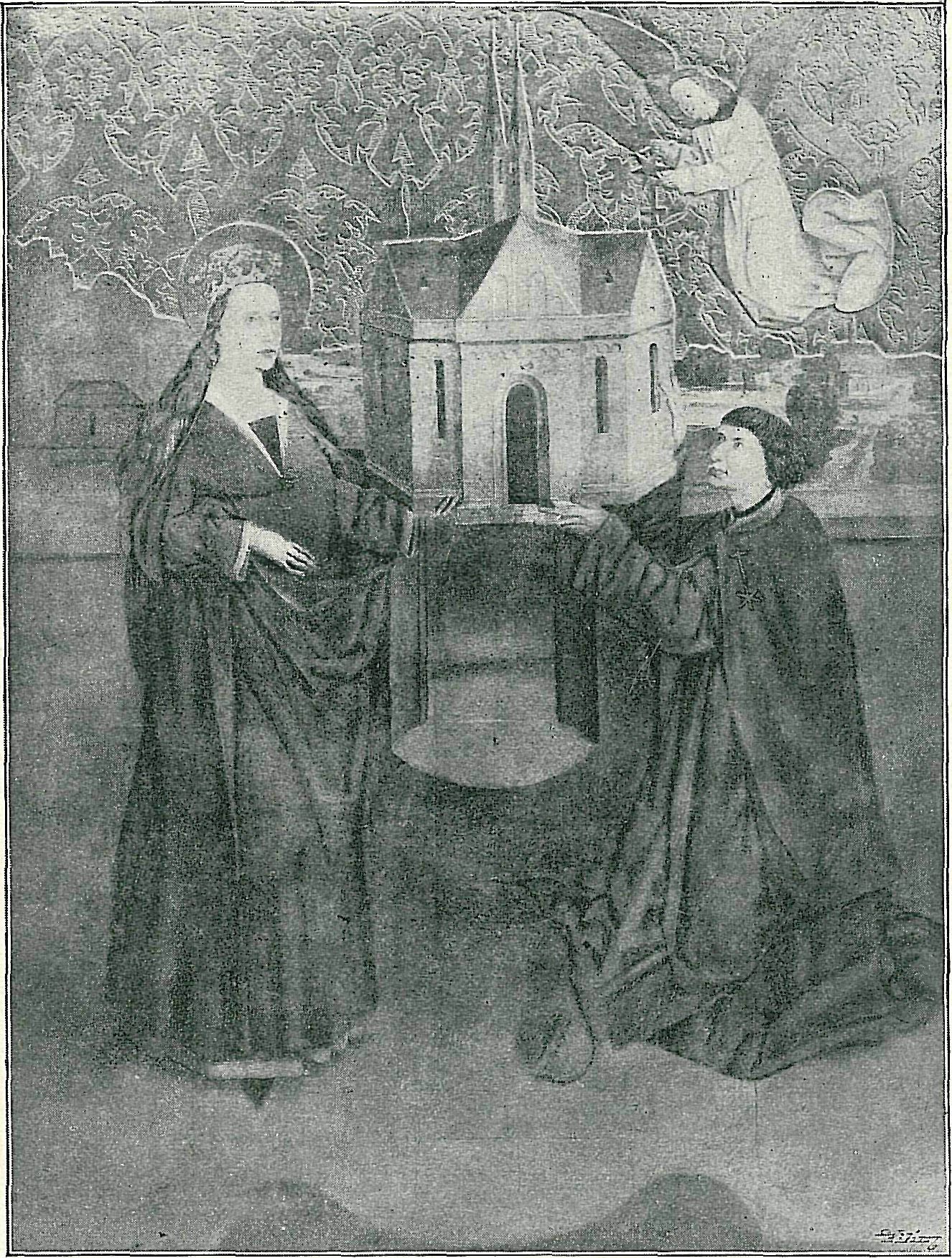vzhledem k účelu obrazu, a v některých případech také vzhledem ku přání donátorovu rozličně byly uspořádány, různí se zmíněné obrazy dosti značně od sebe, jinak však shodují se co do hlavní části své, jíž jest tabulový obraz Mariin, tak velice, že je pokládati dlužno za více nebo méně volné kopie jednoho z nich, nebo za kopie nyní již ztraceného originalu. Na obraz Vyšebrodský upomíná v některých věcech, jež má s ním společny, také obraz Zbraslavský z konce XIV. století (jehož jsme měli na výstavě dvě kopie na dřevě malované: z kostela Chuchelského a z Podola u Prahy); uchyluje se však od něho značně ve vytvoření obličeje, v čemž blíží se typu, jenž byl mistru Dětřichovi vlastní. Ve zvláštní skupinu uspořádány byly ony obrazy Mariánské, jichž prototypem jest výtečný obraz kostela Zlatokorunského. Byly to zejména: roztomilý obrázek ze sakristie metropolitního chrámu v Praze, pěkný obraz děkanského chrámu v Písku, obraz klášterního chrámu ve Lnářích a Madonna Týnského chrámu; veškery tyto obrazy pocházejí z doby Karla IV. a Václava IV. Vliv starší vlaské školy (zejména Cimabuův) jeví se v obraze Doudlebském z druhé polovice XIV. století. Zajímavo jest faktum, že Madonna Doudlebská shoduje se zcela s Madonnou Pekarskou. Kopie Pekarského obrazu rozšířily se v Čechách hojně v roce 1680, kdy original milostného obrazu přivezen byl do Prahy a tu v chrámě sv. Salvátora v koleji Klementinské k veřejné úctě vystaven. Na Národopisné výstavě českoslo-vanské vystavena byla kopie jeho z konce XVII. stol. (majetek knížec. arcibisk. semináře v Praze), korunkami a ozdobami ze stříbrného plechu ozdobená. Reprodukce černé Madonny Březnické representovala ony Mariánské obrazy, v nichž ještě za doby Karlovy ozývají se jakési reminiscence byzantské, jež ostatně i ve století XVII. obrazem Jičínským, t. zv. »rušán-ským«, u nás zase byly oživeny. K Madonně Březnické pojil se pojetím i stářím památný obraz Vyšehradský Panny Marie řečené »de- šťové«. Veškery dosud uvedené obrazy byly vesměs pouze poprsní. Zajímavo bylo srovnati