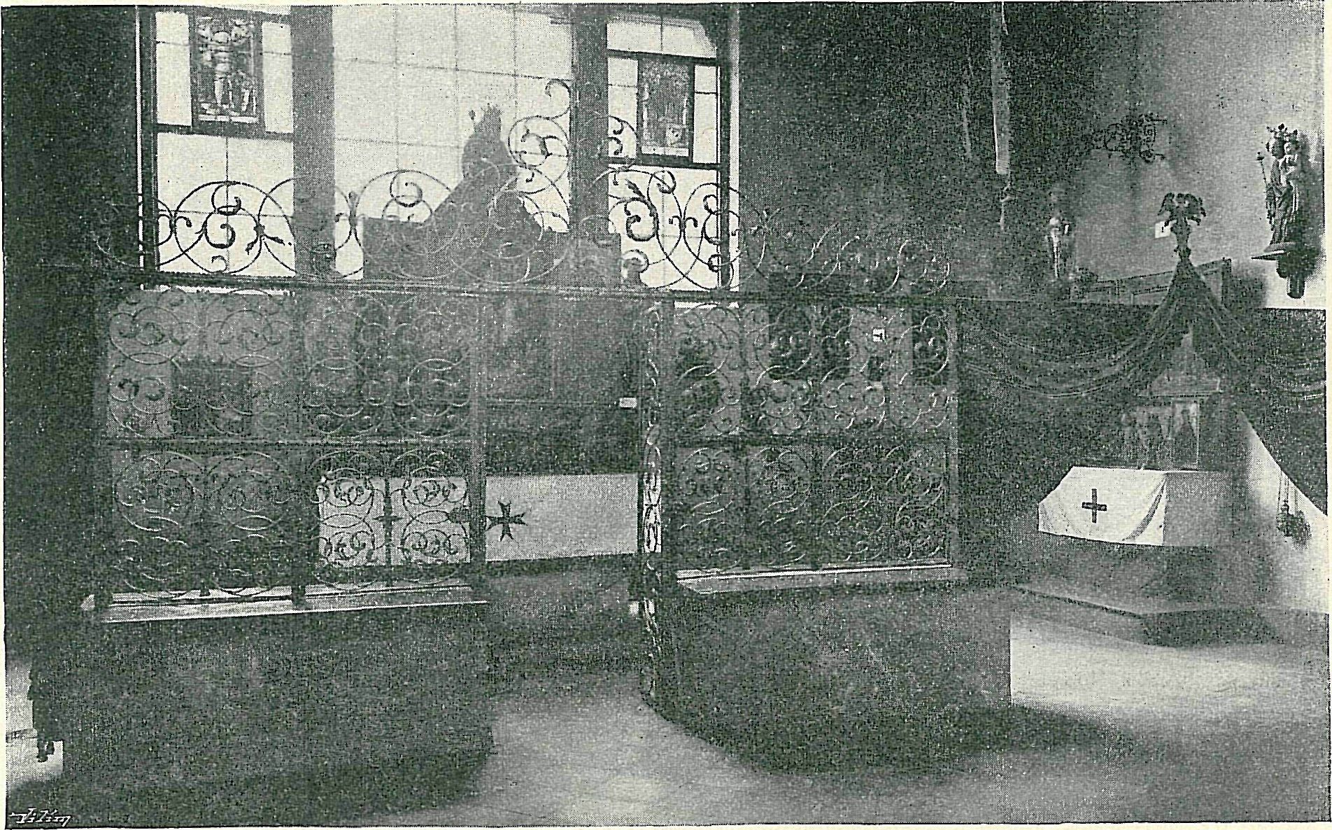 Mimo to rozličná díla mistrovská věnovaná pořádkům aneb pokladny jejich a p. Reliquiář gotický ze XIV. století v podobě mitry, monstrance, toboly, truhly atd.